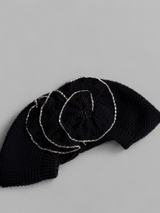 Béret Noir Motif Noir Argent